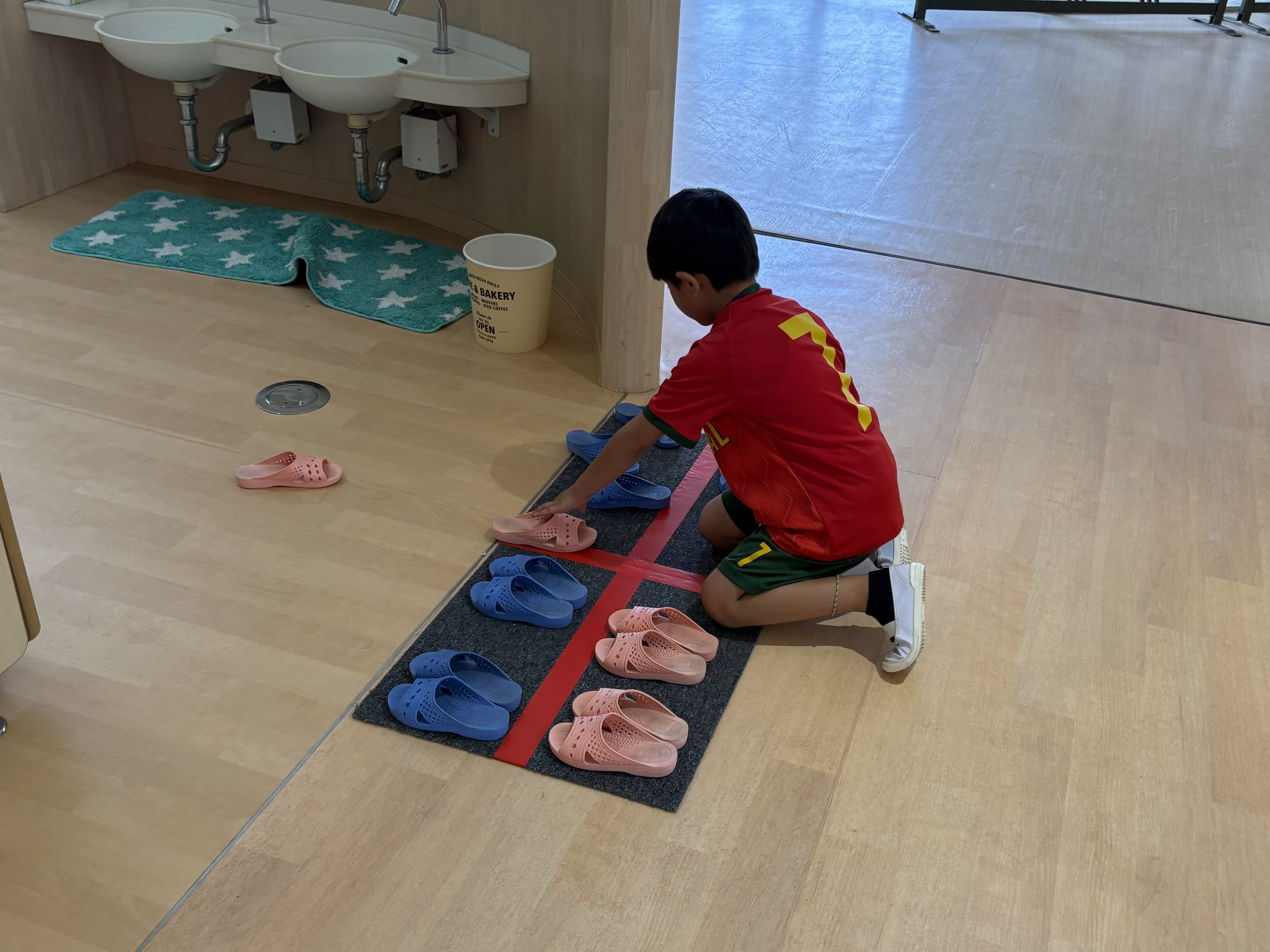 誰かのためにサンダルを揃える年長児(2025-10-28)